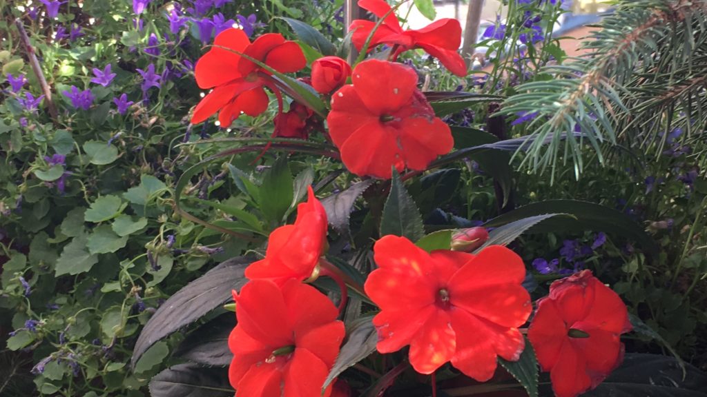 Ich erzähle dem Herrn mit dem Vorgarten, dass seine Sonnenblumen inzwischen größer sind als meine. ‚Reden Sie mit ihnen?‘ – ‚Ich gieße und dünge.‘ – ‚Vielleicht reicht das nicht.‘ Also werde ich nachher mal ein Gespräch mit meinen Blumen führen. Welches Thema ist da angemessen? Wetter, fehlender Regen, schwarze Käfer oder lieber was Philosophisches? Sinn des Blühens und Welkens oder so? – Bei dem Sonnenblumenchampion wachsen schon wieder einige Stiele zwischen den nackten Steinen hervor. ‚Haben sich selbst ausgesät.‘ Dann müssen die Kerne ja den Winter überstanden haben. Meine Herbstaussaat vor zwei Jahren ist nichts geworden, nicht e i n e Blume! Meine auf dem Fensterbrett vorgezogenen sind eingegangen. Ich hab ja auch kein Wort mit ihnen geredet.